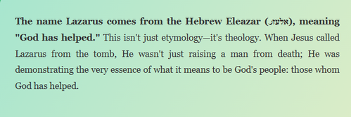 Jesus is calling to His church today just as He called to Lazarus: "Come forth!" Come out of the tomb of self-sufficiency. Come away from the grave clothes of spiritual independence. Remember that your very name (character) as a believer means "God has helped."